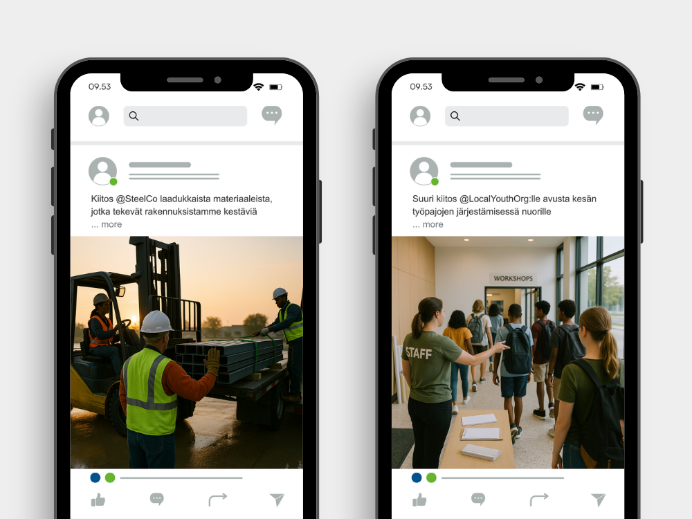 - “Kiitos @SteelCo laadukkaista materiaaleista, jotka tekevät rakennuksistamme kestäviä.”