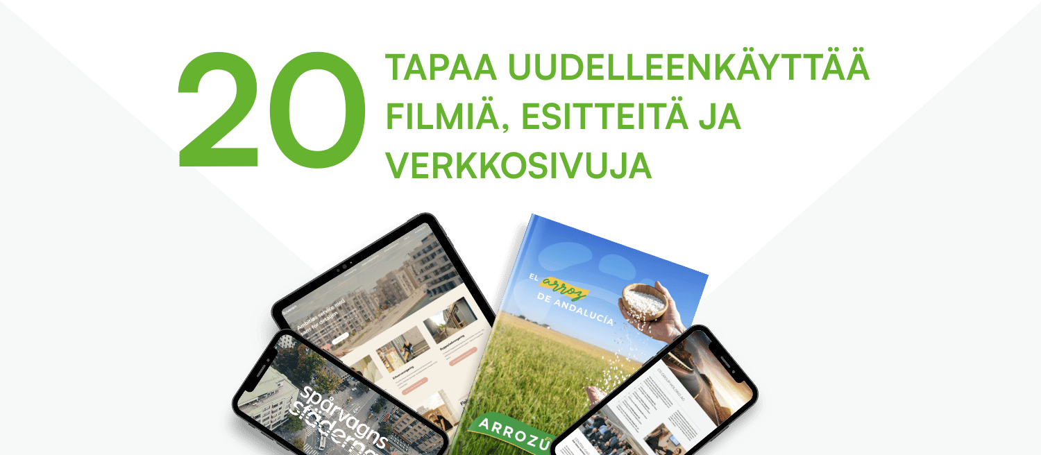 Esittelemme alla konkreettisia esimerkkejä siitä, miten filmiä, esitteitä ja verkkosivuja voi käyttää uudelleen käytännössä.